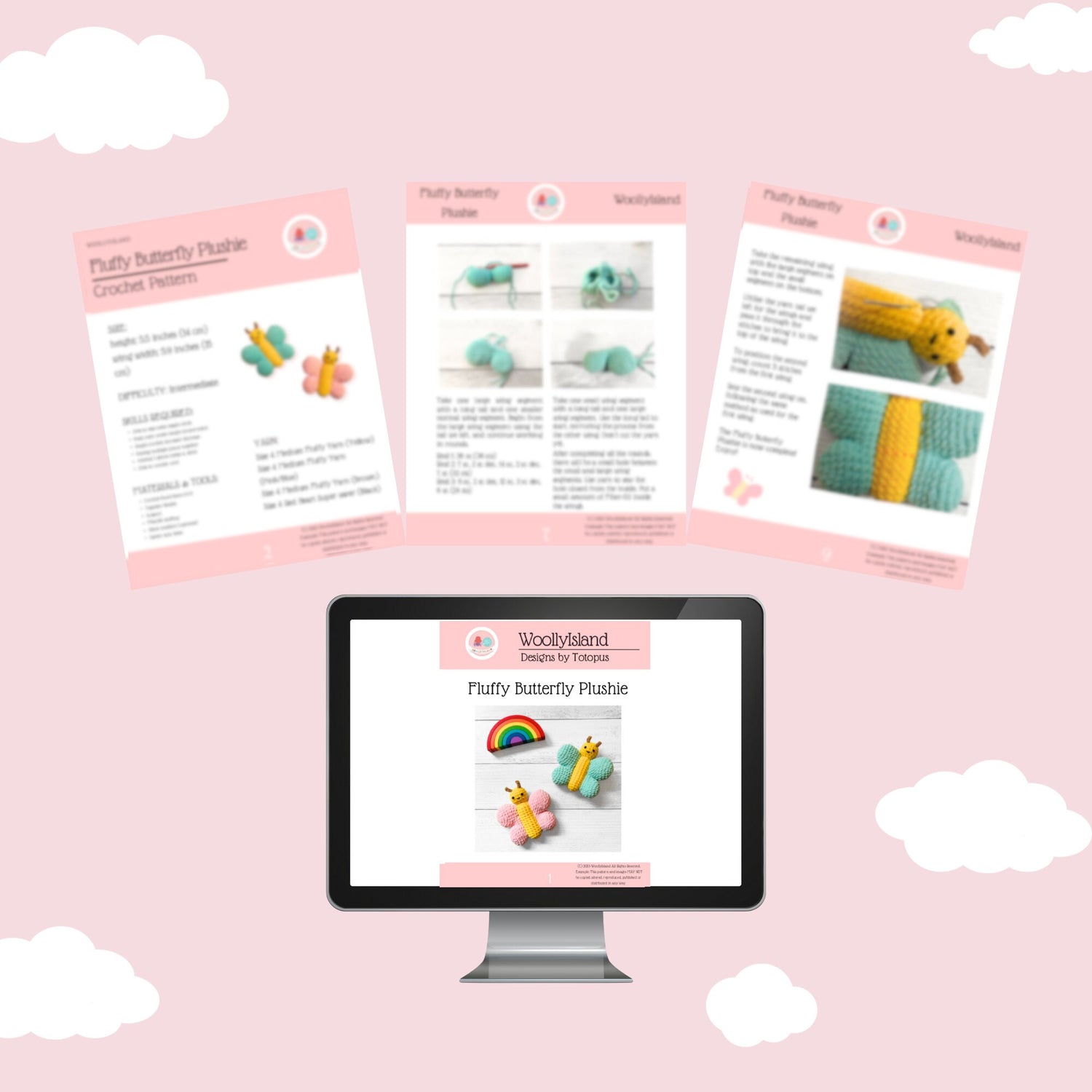 This is a crochet pattern for the FlUFFY BUTTERFLY PLUSHIE.