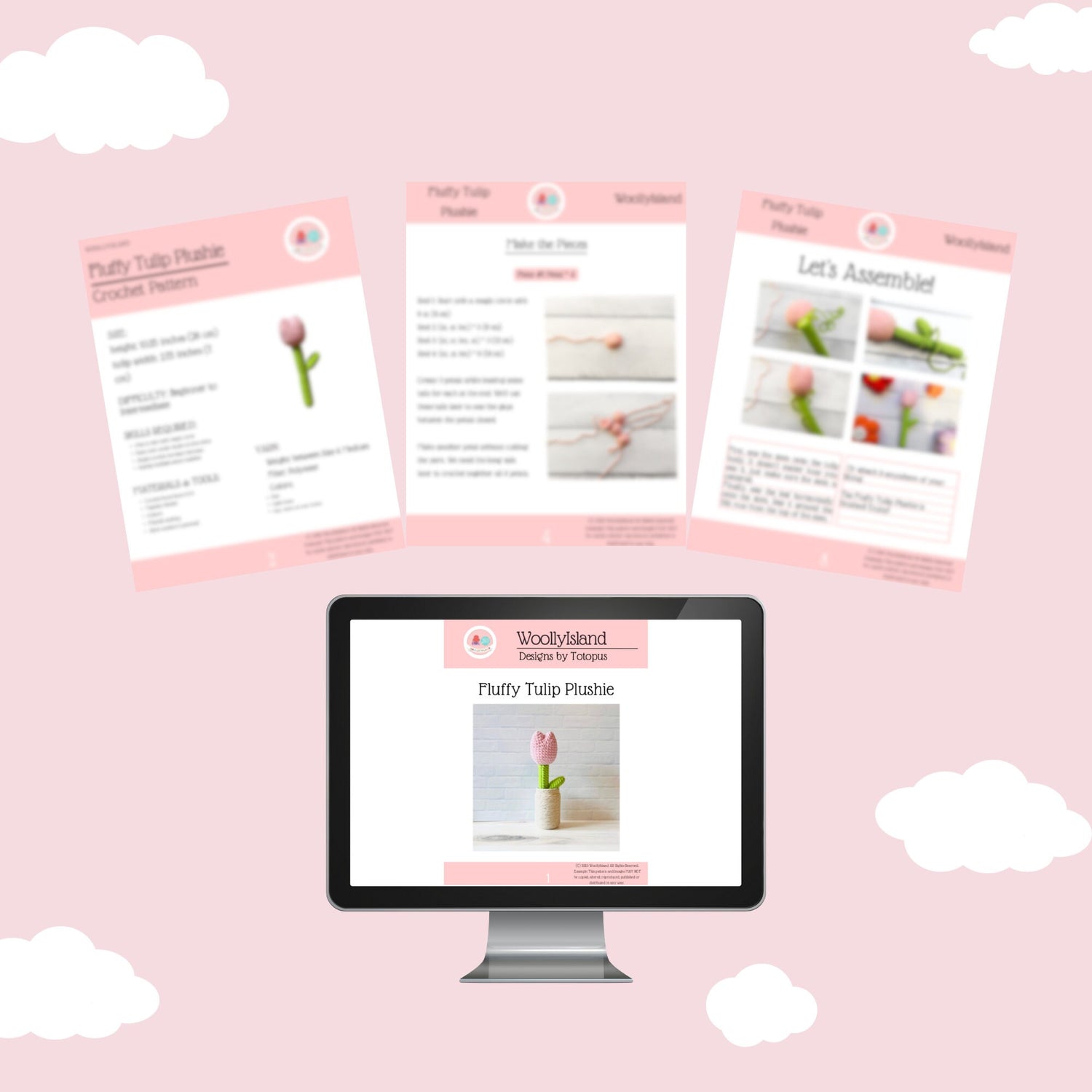 This is a crochet pattern for the FlUFFY TULIP PLUSHIE.